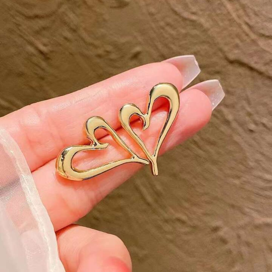 Double heart-shaped gold studs with delicate stone details β a sweet yet stylish statement of love.