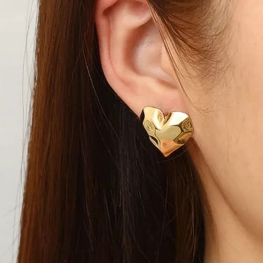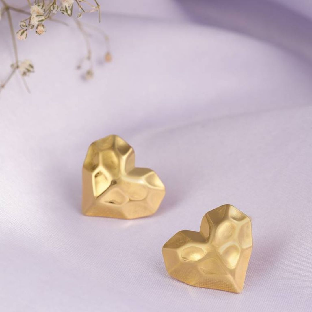 Bold meets romantic with our Crushed Heart Gold Studs — a sculptural twist on the classic heart. Crafted with a hammered texture and finished in rich matte gold, these anti-tarnish, hypoallergenic studs are a modern love letter to your style. Designed for everyday elegance and all-day comfort, they’re perfect for the woman who loves her jewellery with a little edge and a lot of heart.