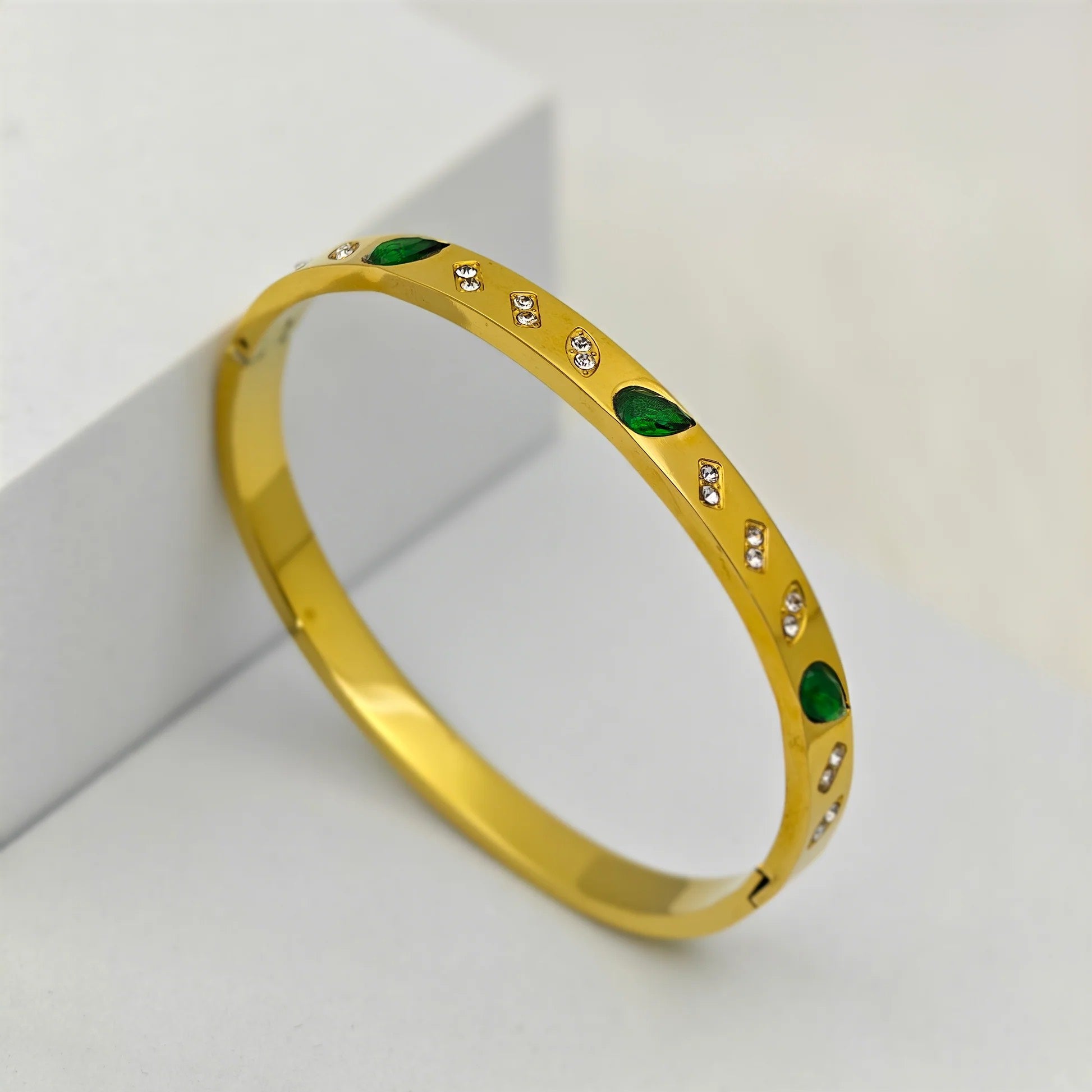 Add a touch of sophistication to your look with this stunning golden bangle. Designed with a sculptural, fluid shape, this bracelet makes a bold yet elegant statement. Its smooth, high-shine finish ensures timeless appeal, perfect for those who love effortless luxury.