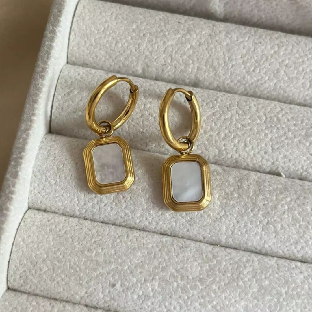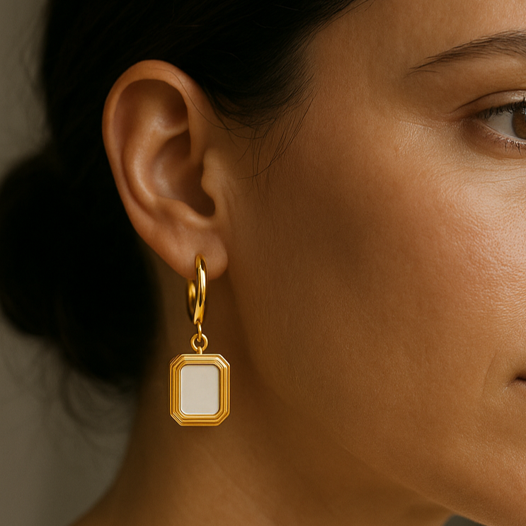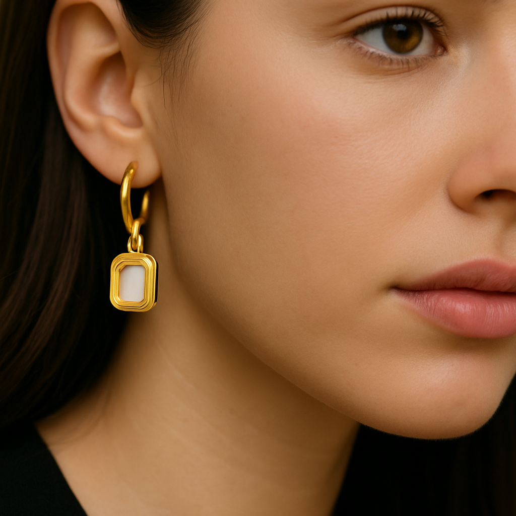 A timeless gold hoop earring featuring a heart drop that catches light with every move — minimal, elegant, and made to shine daily.