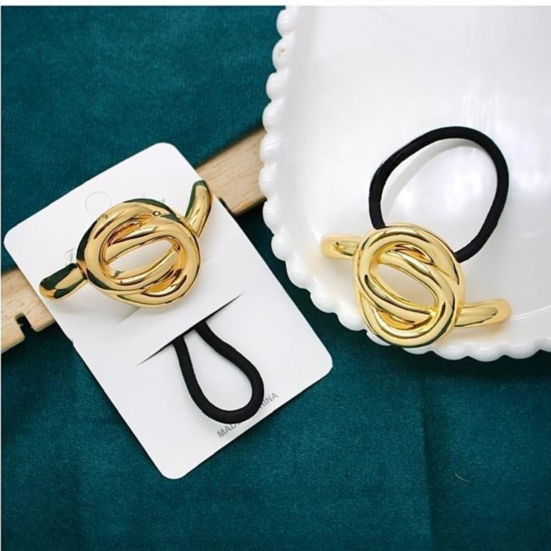 Add a sophisticated twist to your hairstyle with this gold-tone knot hair tie. Designed with a chic interwoven knot accent, this piece effortlessly blends modern minimalism with timeless elegance.