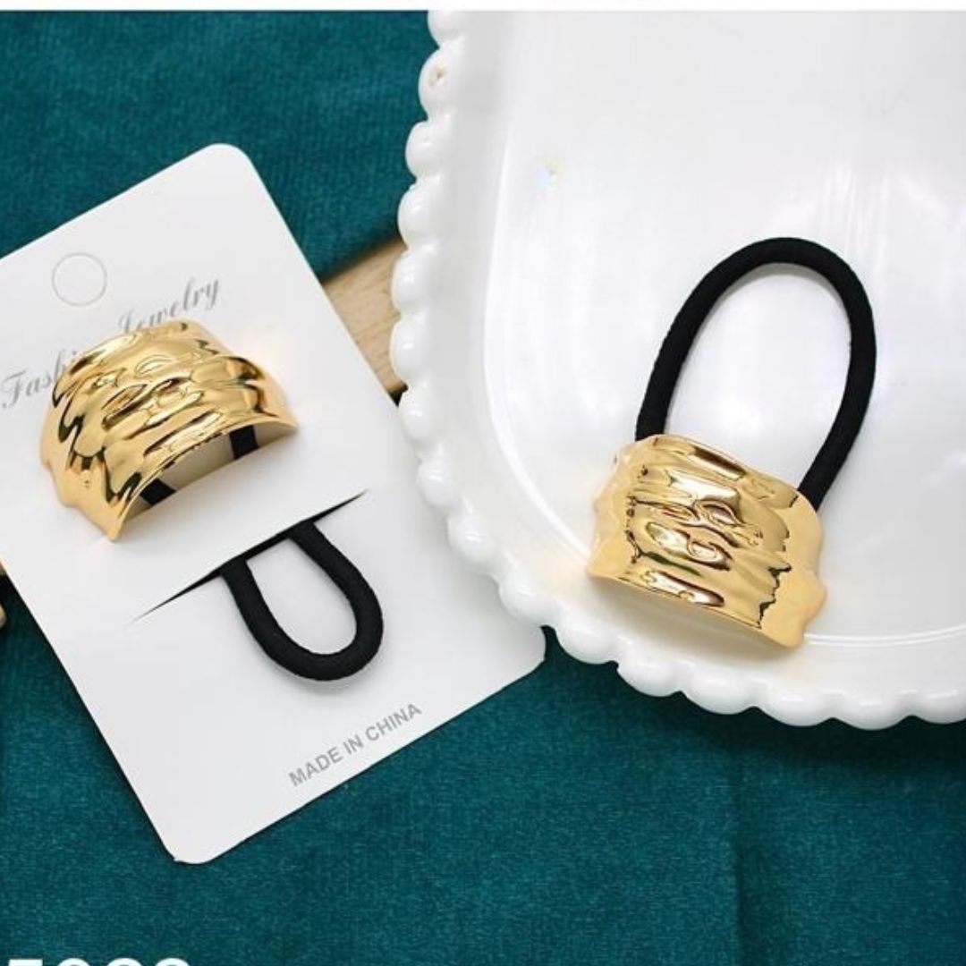 Make a statement with this gold textured hair tie, designed with a sculpted, wavy finish that reflects light beautifully. This unique piece adds an effortless touch of luxury to your everyday hairstyles, making it a standout addition to your accessory collection.