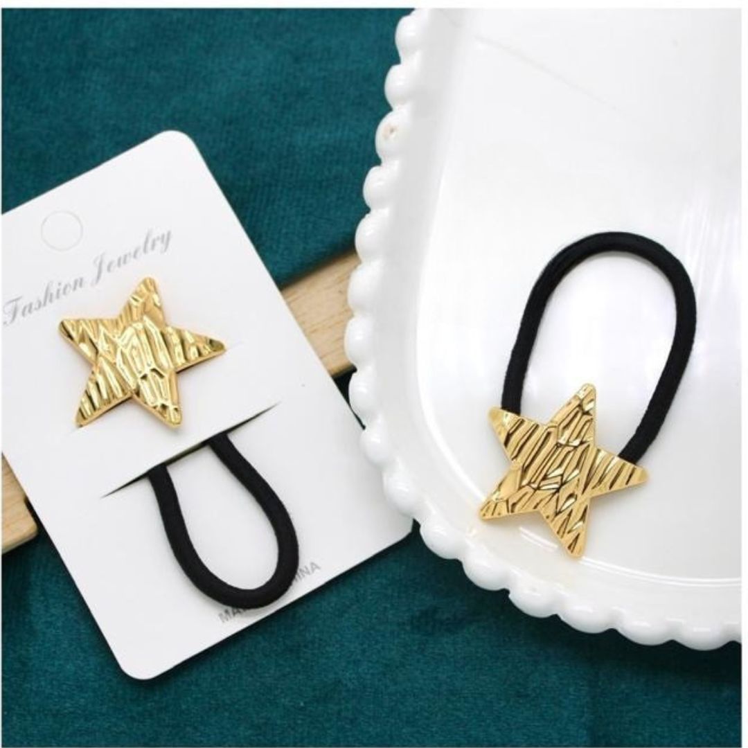 Elevate your everyday hairstyle with this gold-tone textured star hair tie. Featuring a dazzling star design with a unique textured surface, this accessory adds a touch of glamour and sophistication to your look.