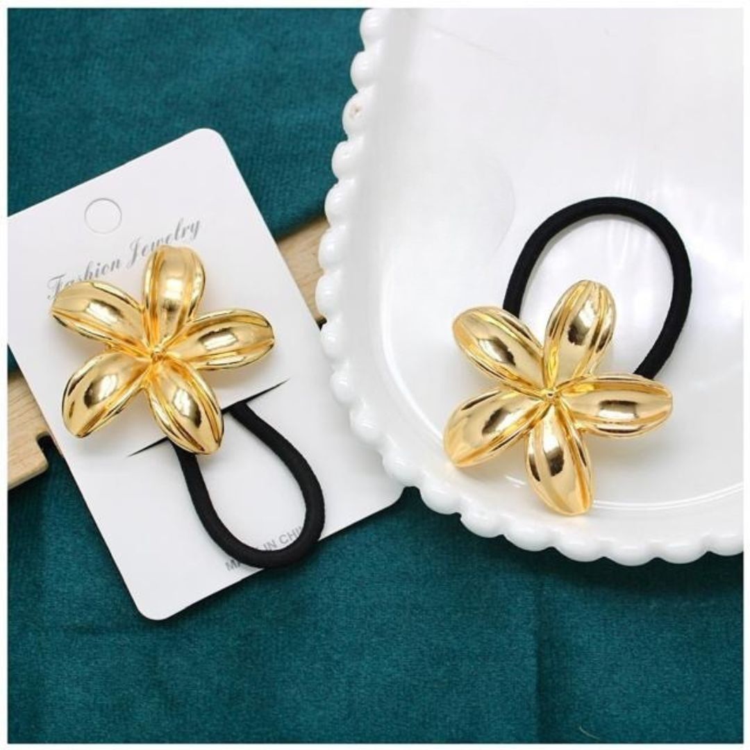 Add a luxurious floral charm to your hairstyle with this stunning golden flower hair tie. Designed to bring elegance and grace to your everyday look, this piece is perfect for effortlessly elevating your ponytail or bun.