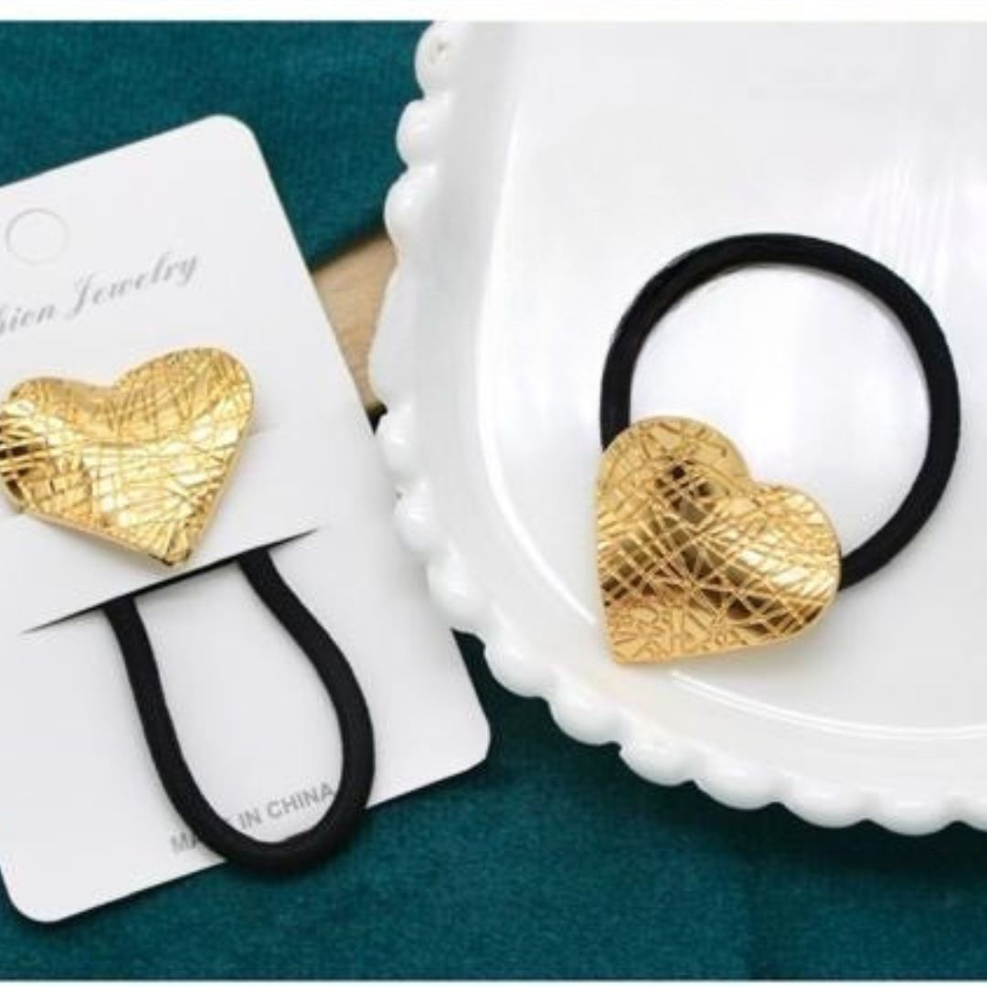 This gorgeous heart-shaped gold hair tie is the perfect blend of romance and sophistication. With a textured gold finish, it adds a chic yet delicate charm to any hairstyle.