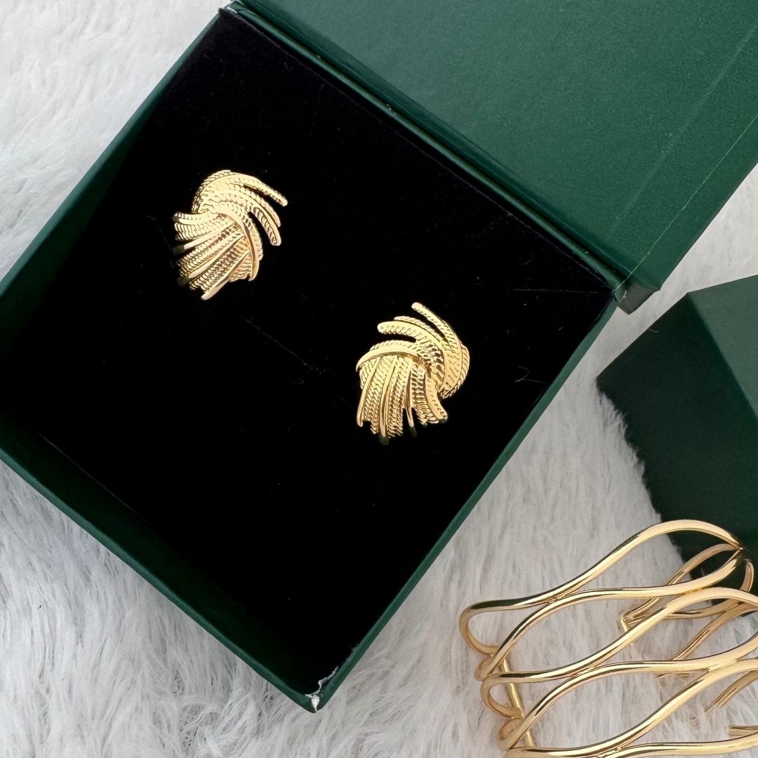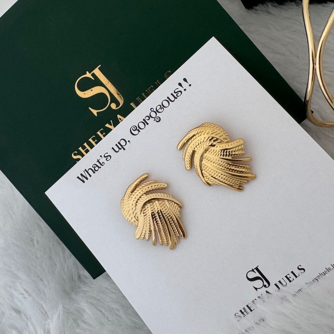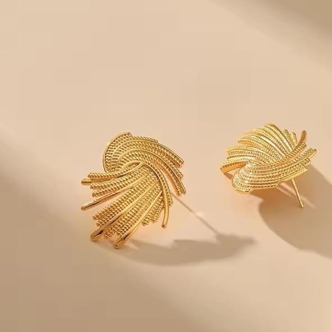 Embrace elegance with our Golden Swirl Statement Earrings. Designed with intricate textures and a dynamic swirl pattern, these gold-plated studs add a sophisticated and artistic touch to your ensemble. Perfect for those who love bold yet graceful jewelry, these earrings are a true showstopper.