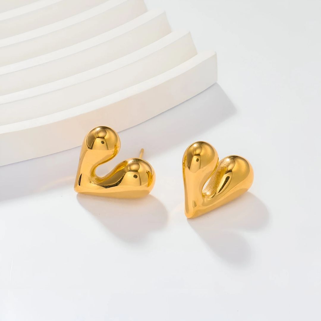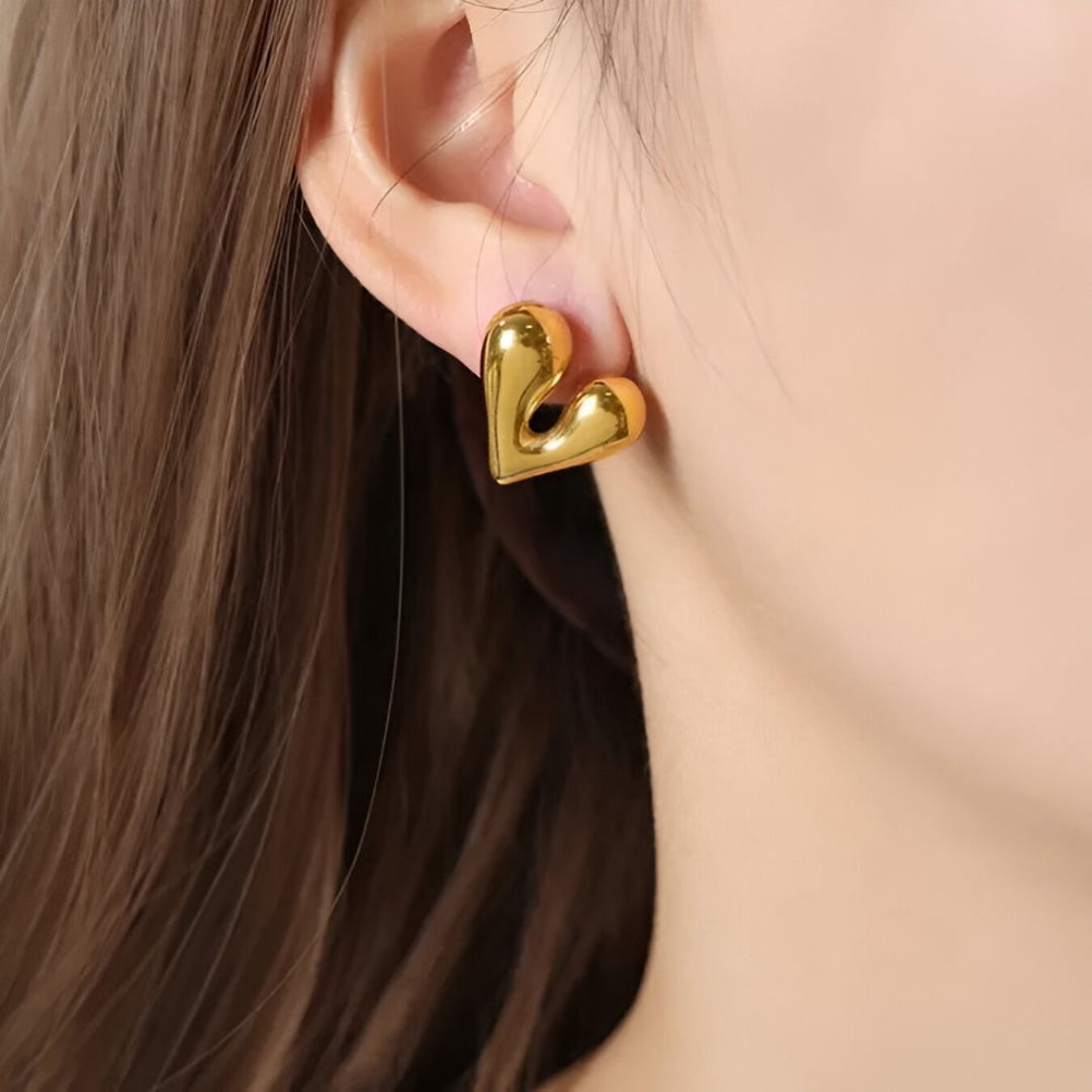 These adorable gold heart-shaped studs are perfect for adding a touch of love and shine to your everyday look. Lightweight and easy to wear, they make a sweet statement.