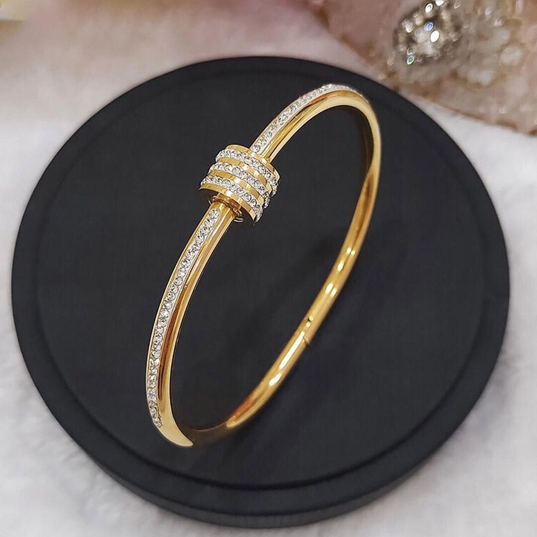 Add a touch of sophistication to your look with this stunning gold-tone solid coil bangle. Designed with a sculptural, fluid shape, this bracelet makes a bold yet elegant statement. Its smooth, high-shine finish ensures timeless appeal, perfect for those who love effortless luxury.