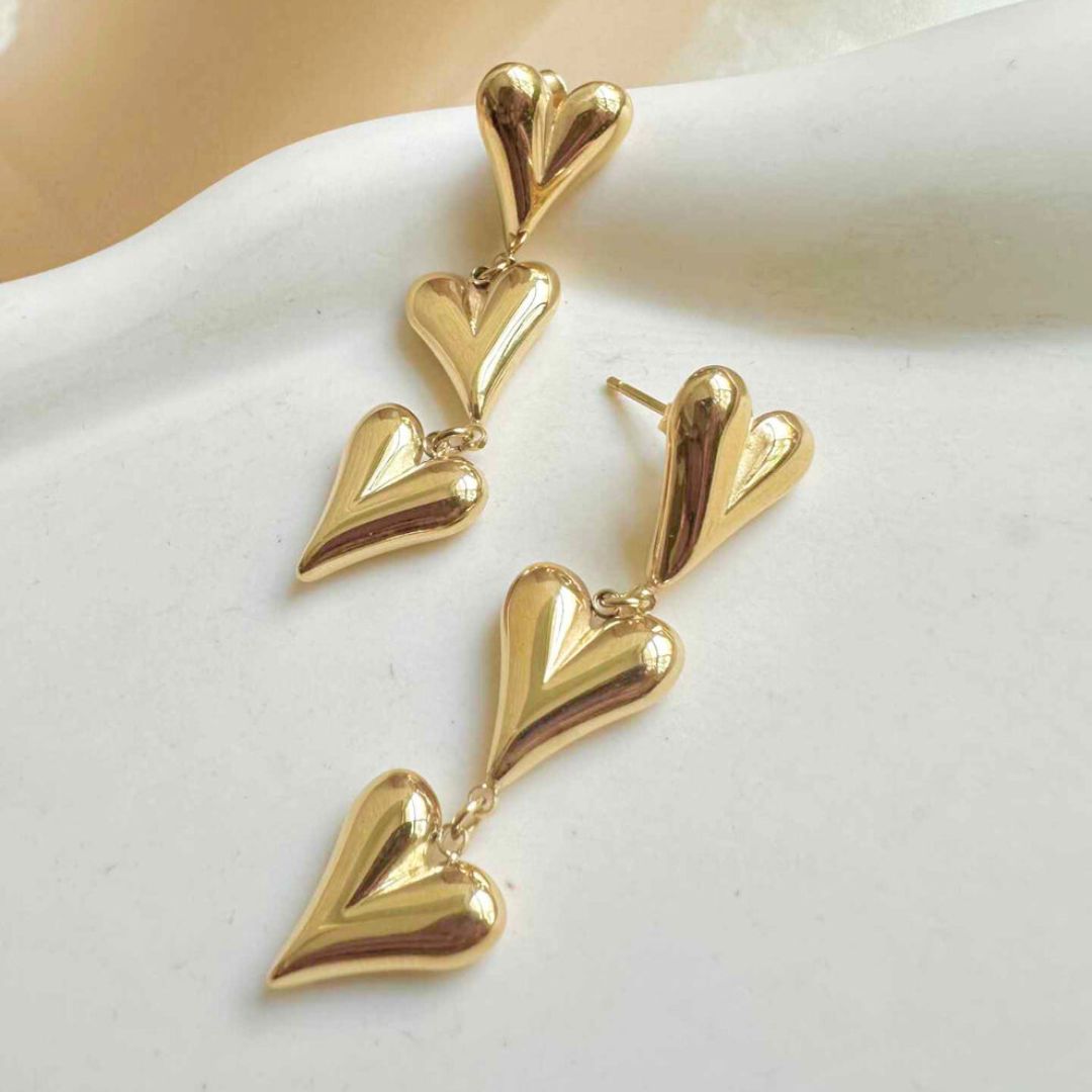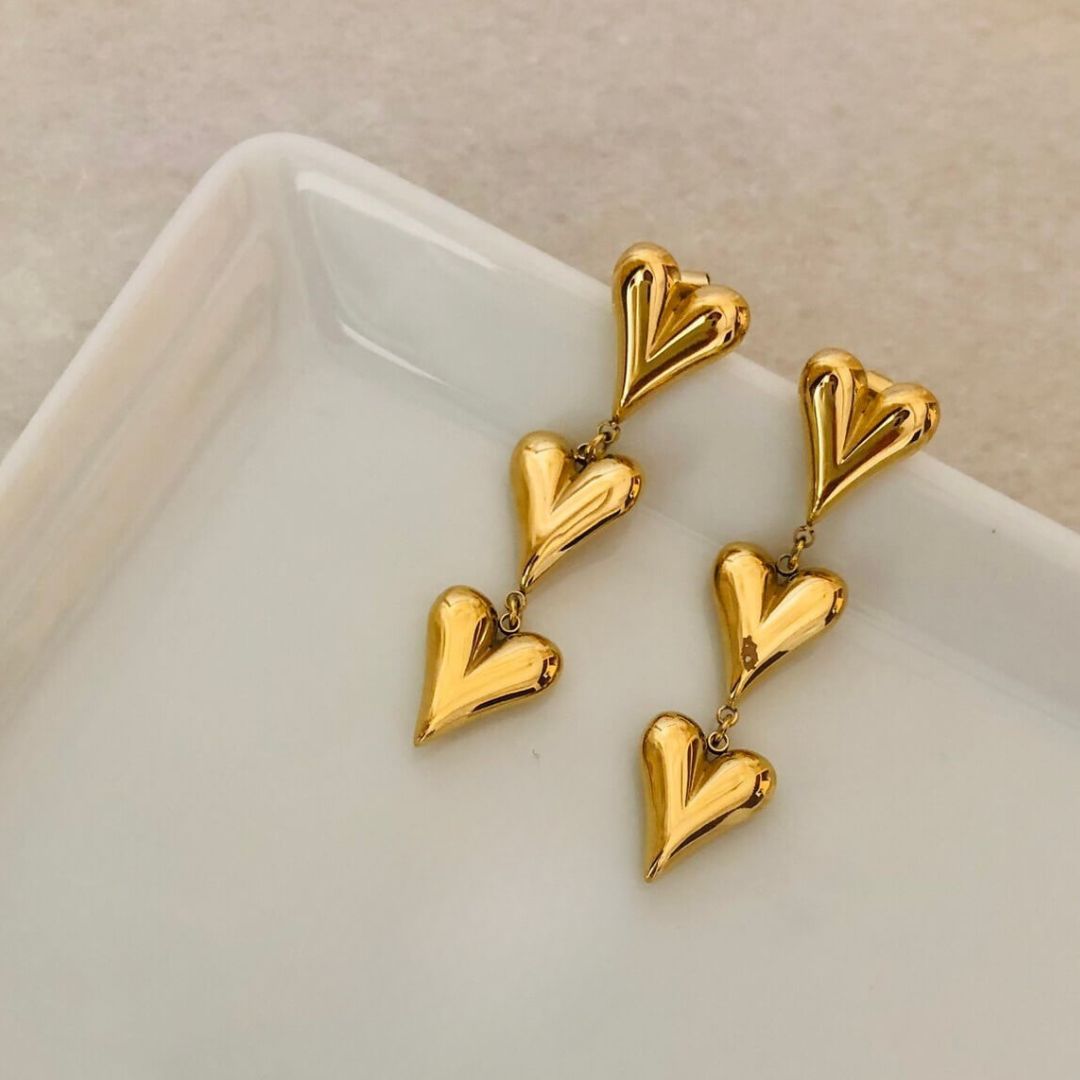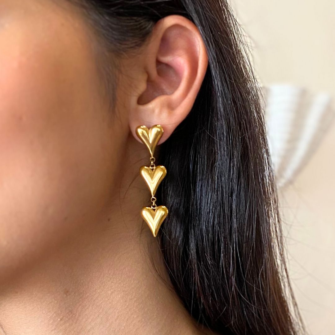 These cascading gold heart earrings bring a romantic vibe; style them with soft waves and a deep red dress for a dreamy date night look