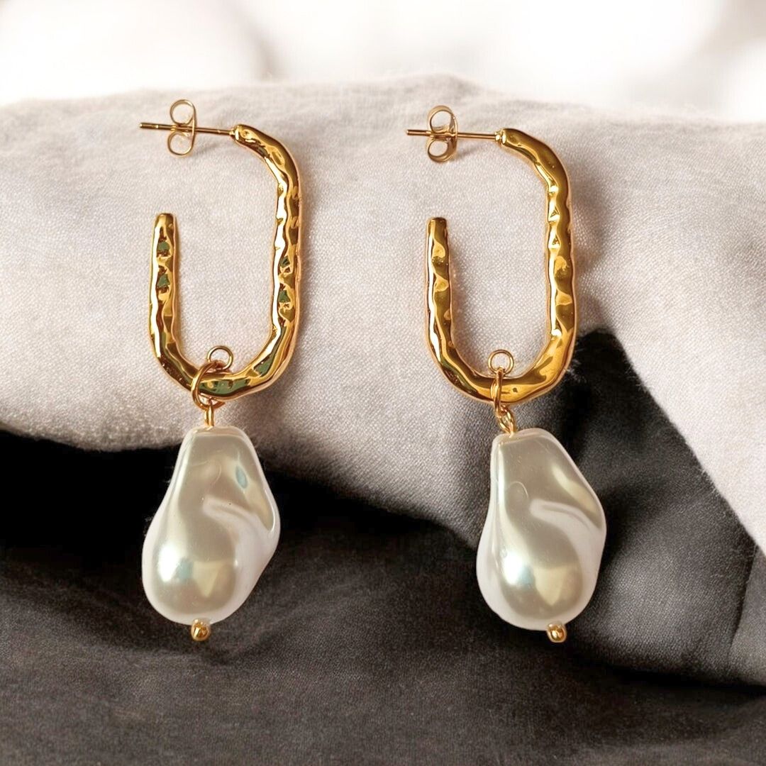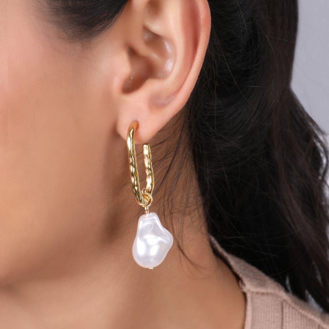 Make a statement without saying a word. Our Molten Pearl Hoops feature a chunky, hammered gold hoop paired with a lustrous irregular baroque-style pearl — designed to mimic the effortless elegance of molten metal and nature’s perfect imperfection.