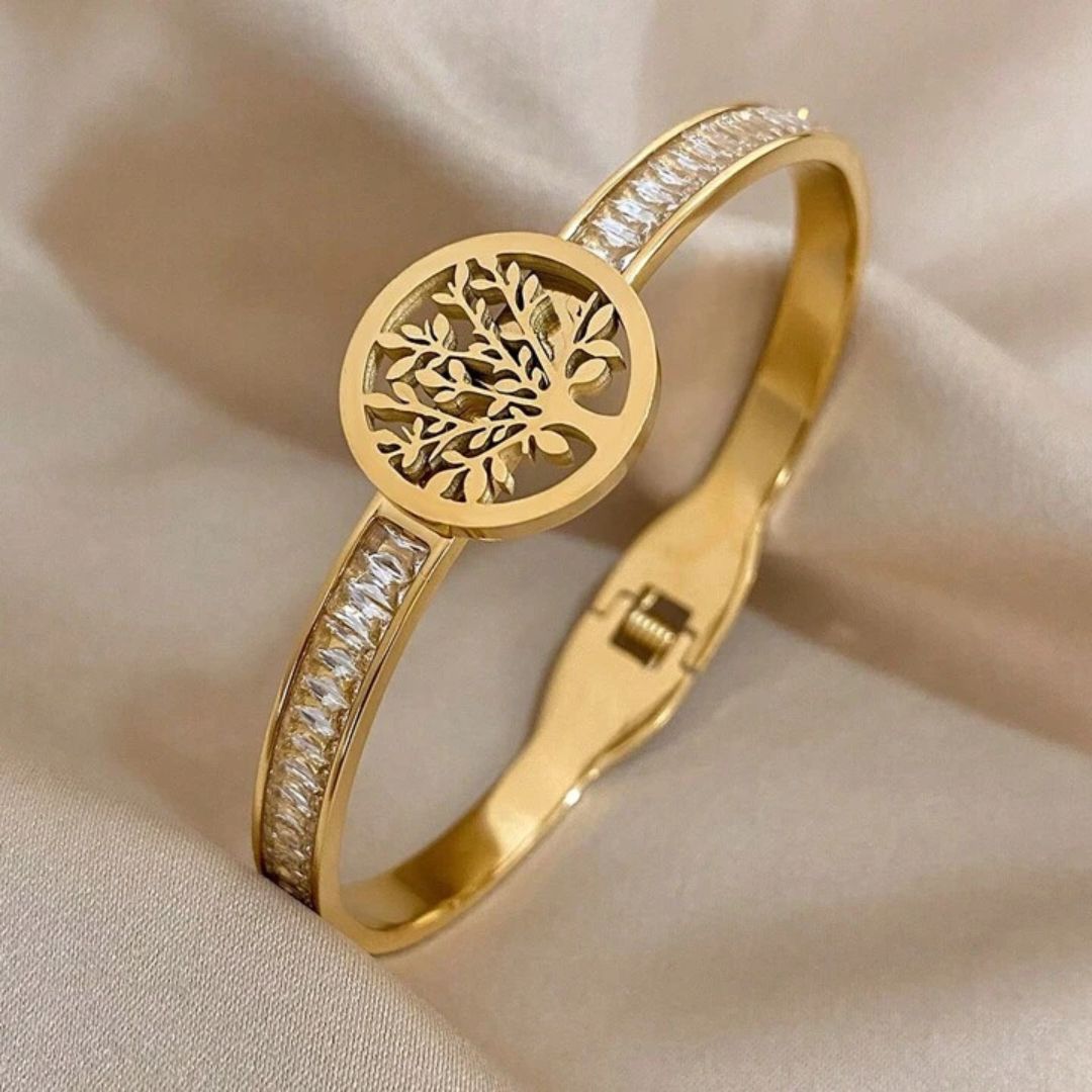 Add a touch of sophistication to your look with this stunning golden bangle. Designed with a sculptural, fluid shape, this bracelet makes a bold yet elegant statement. Its smooth, high-shine finish ensures timeless appeal, perfect for those who love effortless luxury.