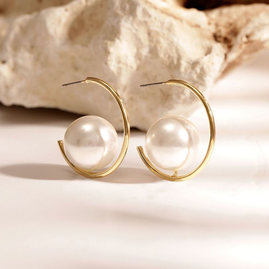 Experience a blend of minimalism and bold design with these Sculpted Spiral pearl Hoop Earrings. Featuring an elegant curved structure that gracefully wraps around the earlobe, these hoops are accented with a smooth gold sphere, creating a unique floating effect. Crafted for those who appreciate refined yet eye-catching jewelry, these earrings are a must-have for your collection.