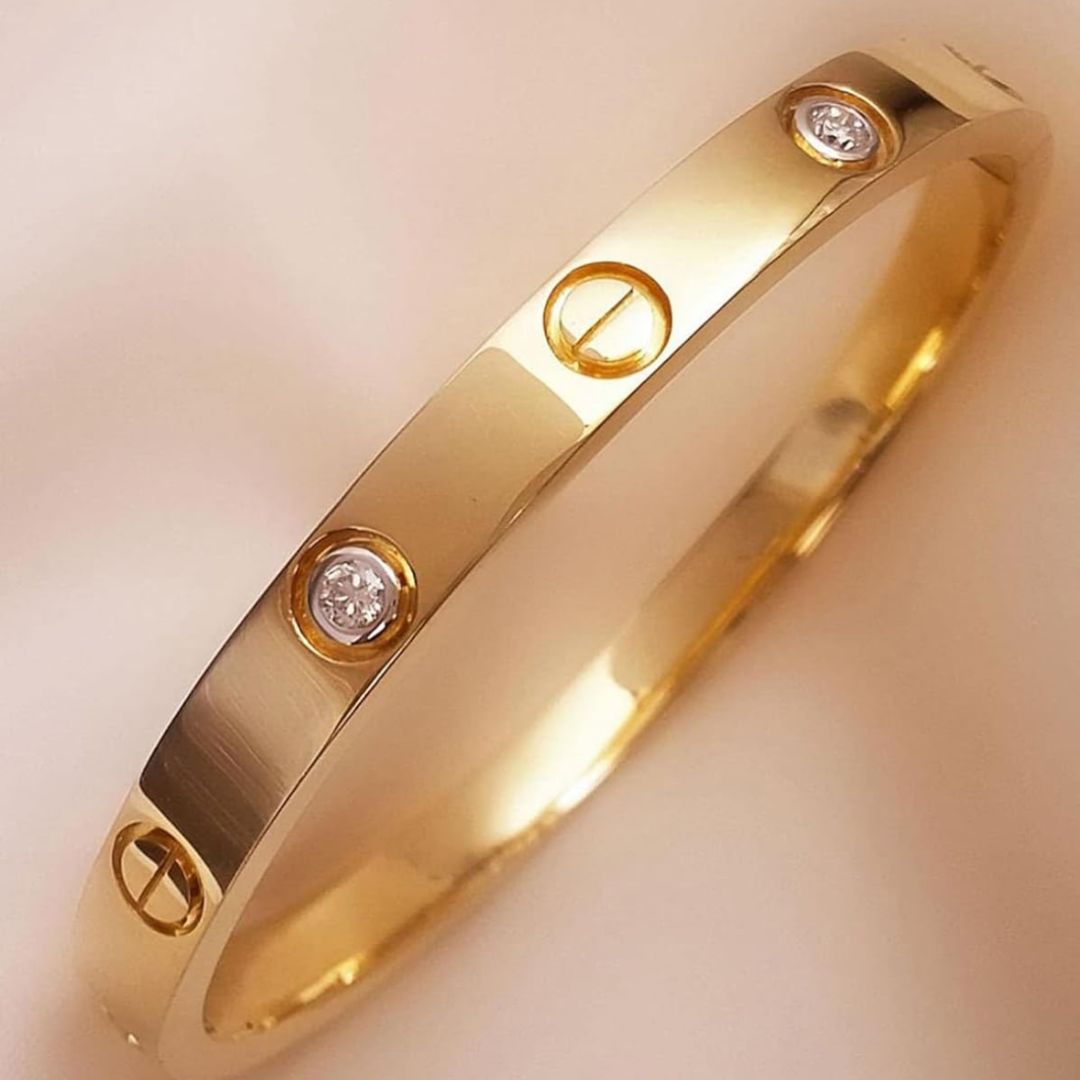 Handcrafted with 100% Stainless steel for long lasting, high quality cubic zircon has been perfectly set on the love bangle. 18K real gold plating will ensure a very long lasting brilliant finish that is nickel free, lead free and friendly to sensitive skin. Great choice for anniversary, engagement, party, meeting, dating, wedding, daily wear, etc