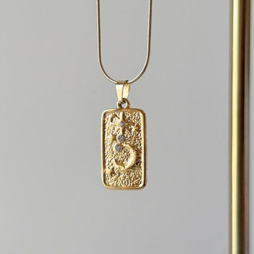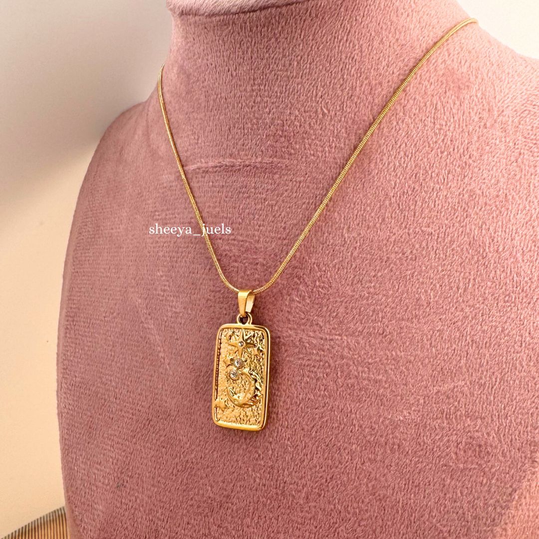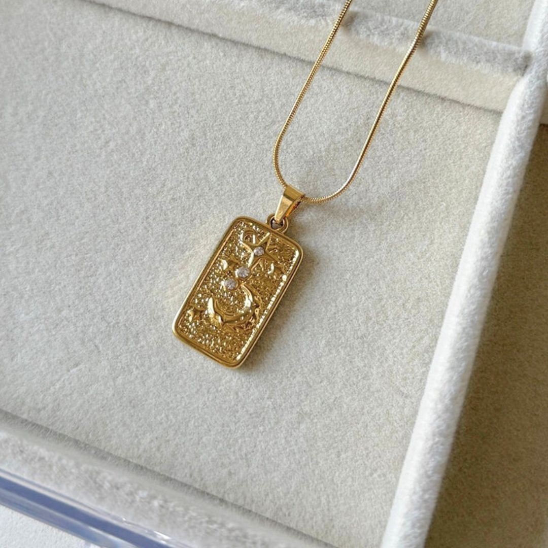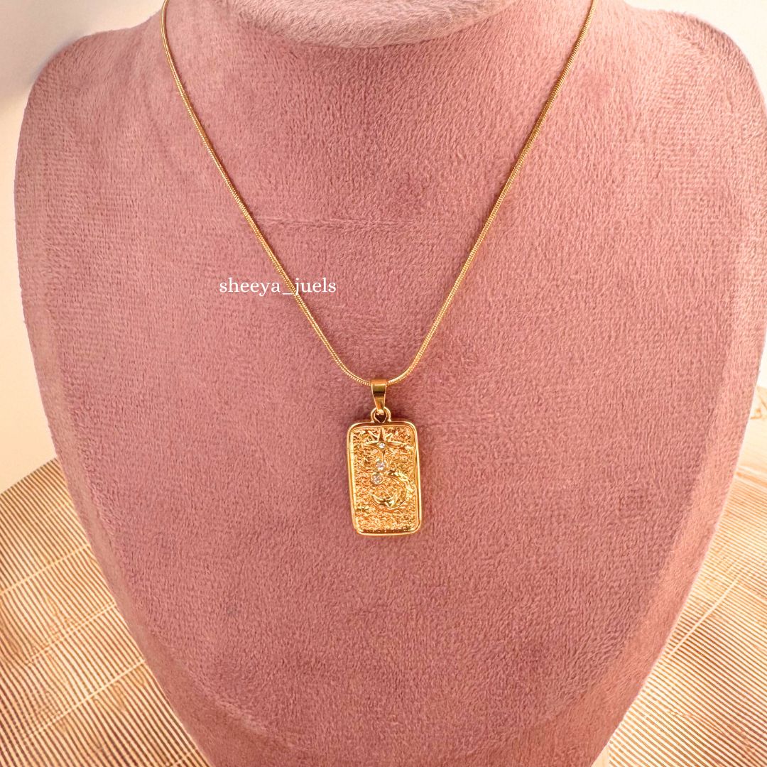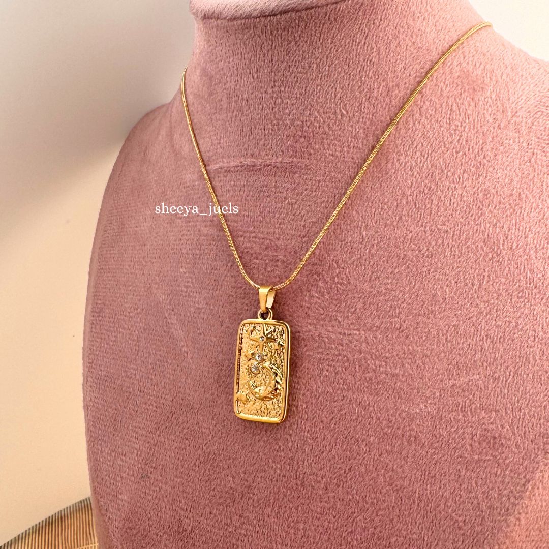 💛 Design: Rectangular embossed pendant with intricate detailing