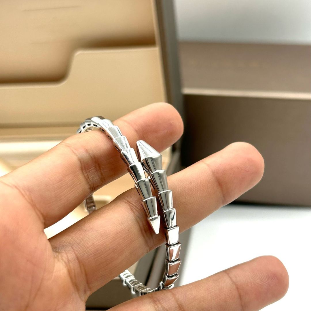 Add a touch of sophistication to your look with this stunning Silver bangle. Designed with a sculptural, fluid shape, this bracelet makes a bold yet elegant statement. Its smooth, high-shine finish ensures timeless appeal, perfect for those who love effortless luxury.