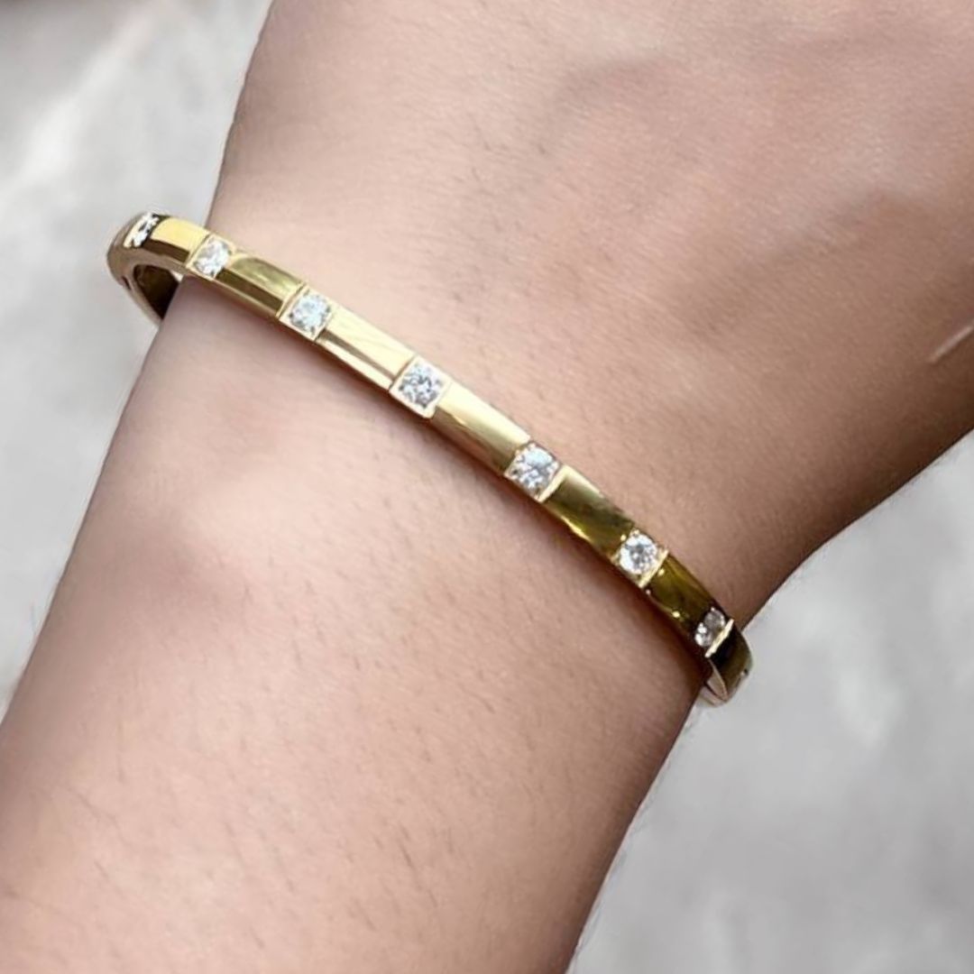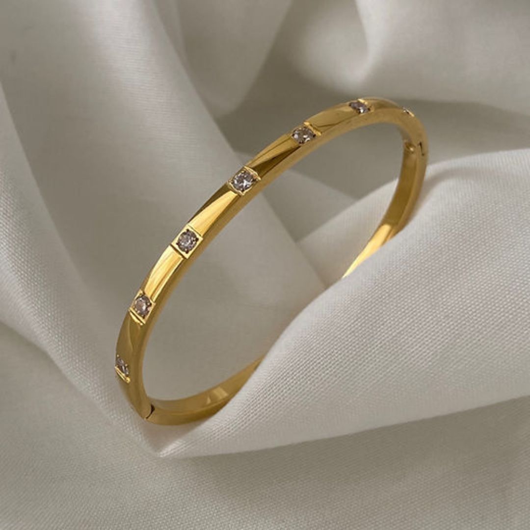 Add a touch of sophistication to your look with this stunning golden bangle. Designed with a sculptural, fluid shape, this bracelet makes a bold yet elegant statement. Its smooth, high-shine finish ensures timeless appeal, perfect for those who love effortless luxury.