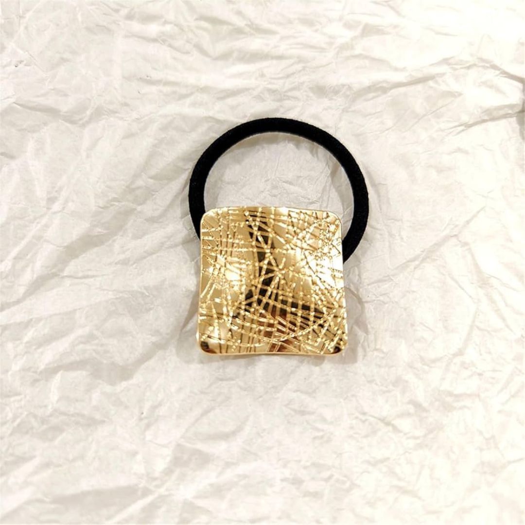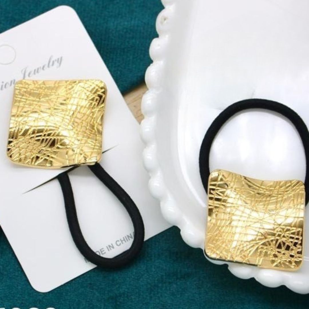 Add a modern edge to your hairstyle with this textured gold square hair tie. The unique abstract pattern on the metal piece gives a sophisticated yet trendy vibe, perfect for those who love statement accessories.